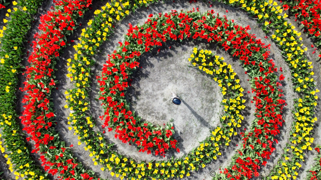 ‘Embedded’ – een labyrint in voorjaarsbloemen is een samenwerkingsproject tussen kunstenaars Pam Vis-Feijtes (Keramiek) en Gerard ten Broek (LandArt).